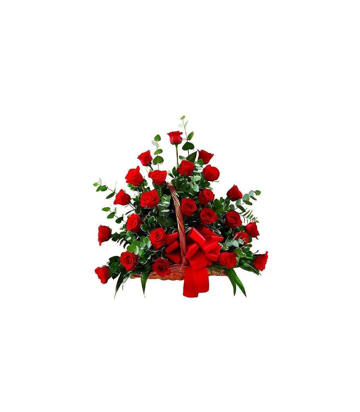 Un elegante arreglo de 24 rosas frescas dispuestas en una canasta. Ideal para expresar amor, admiración o gratitud en cualquier ocasión especial. Cada rosa es seleccionada cuidadosamente para asegurar su calidad y belleza.