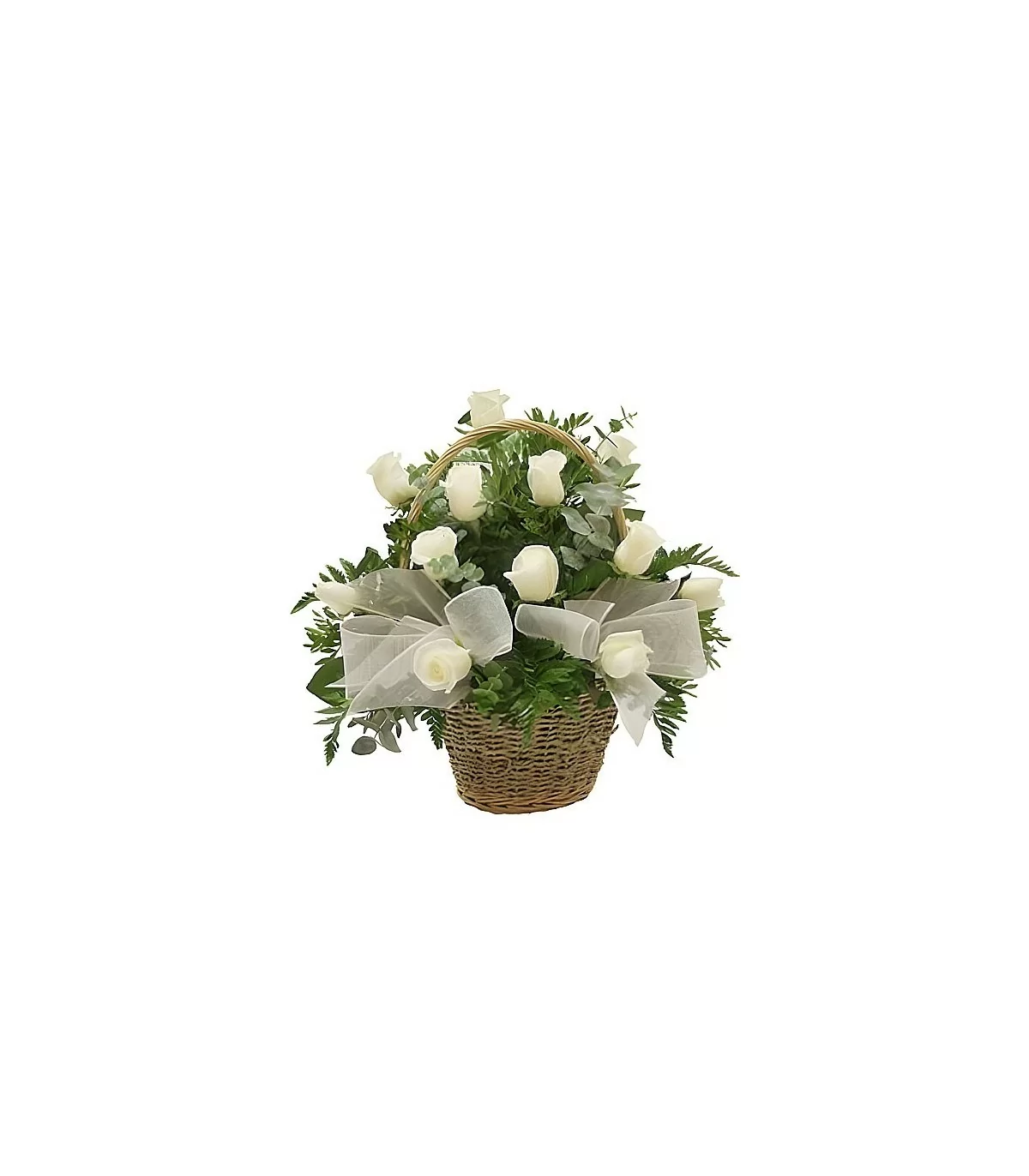 Envía un mensaje de condolencias, amor y esperanza con esta hermosa canasta con una docena de elegantes rosas blancas. Este arreglo fúnebre, cuidadosamente elaborado, es ideal para colocarlo en el piso junto a la urna, en una mesa, o sobre un pedestal, proporcionando un toque de serenidad y belleza en momentos difíciles. Las rosas blancas simbolizan pureza y paz, ofreciendo consuelo y apoyo a quienes más lo necesitan.