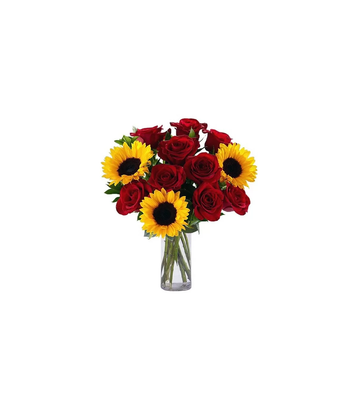 Florero de Vidrio 10 Rosas y 3 Girasoles