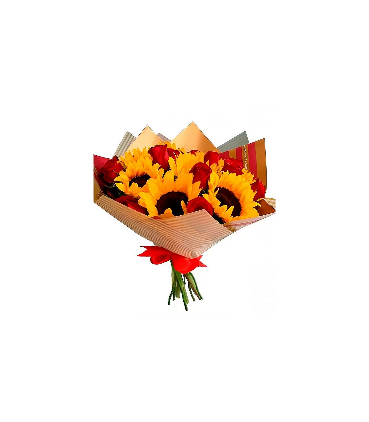 Una combinación única que une la delicadeza de las rosas con la exuberancia de los girasoles, creando un ramo versátil y lleno de significado, perfecto para cualquier ocasión.