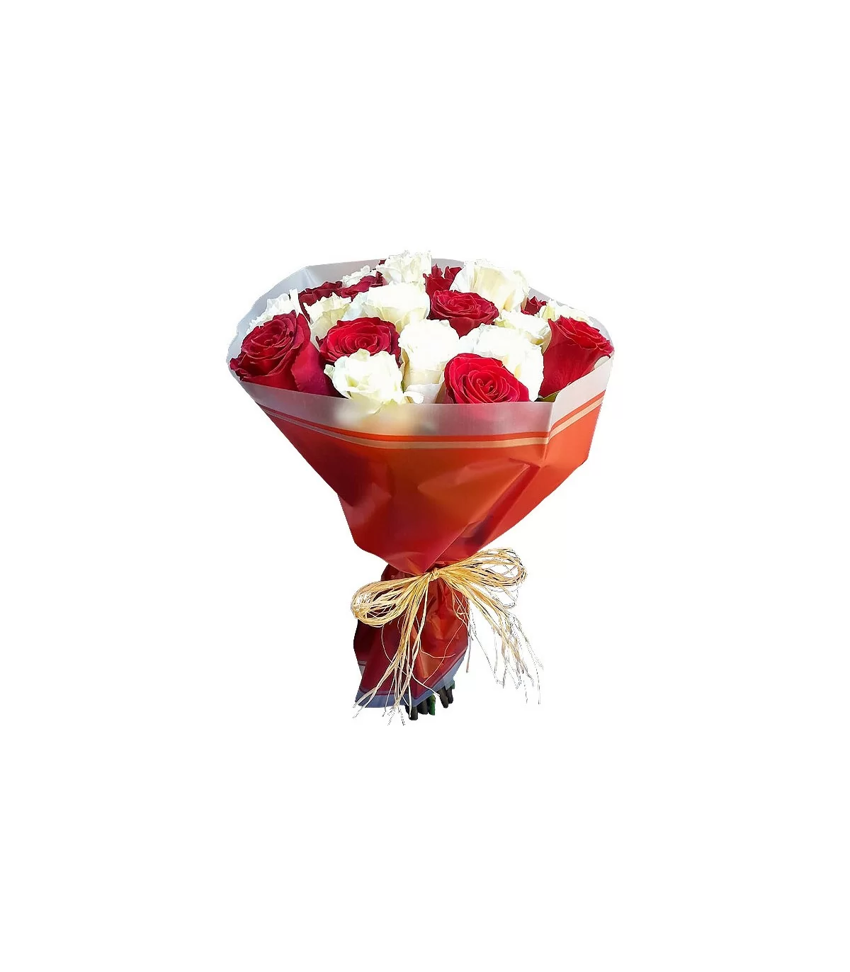 Añade un toque de romance a cualquier ocasión con nuestro ramo de 24 rosas rojas y blancas. Este hermoso arreglo combina la intensidad de las rosas rojas con la pureza de las blancas, creando una presentación deslumbrante que celebra el amor y la admiración.